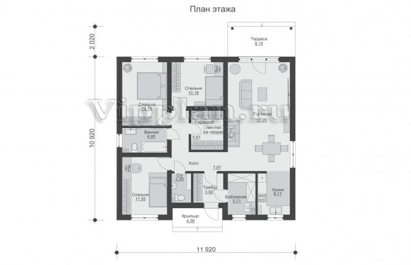 | Размеры дома: | 12.94м×11.92м |